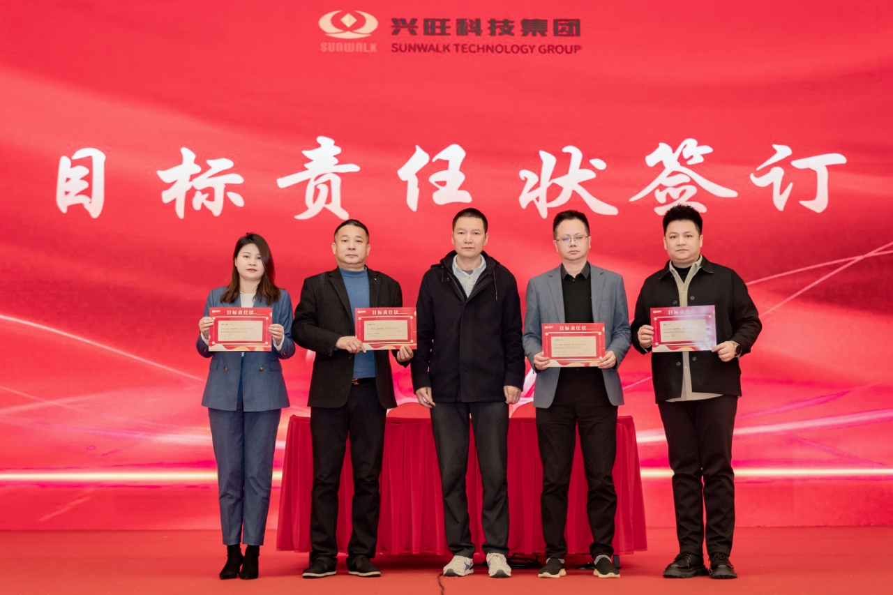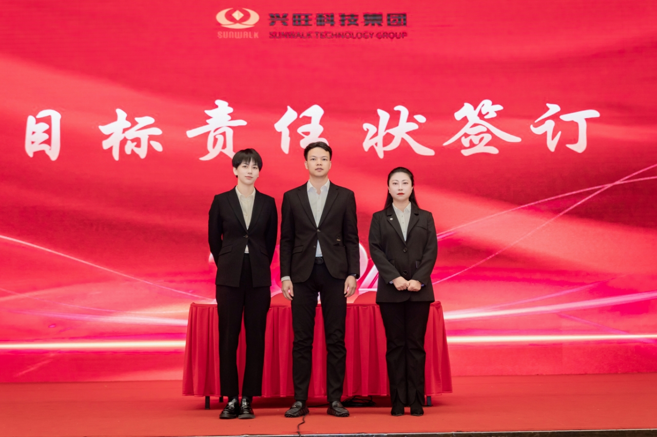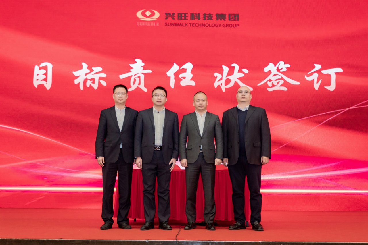 集团副董事长侯培林主持本次工作会议,并宣读集团人事任免决定。随后,集团董事长侯兴旺、集团总裁侯四华、集团副总裁侯宇、集团副总裁夏帅、兴迈数智科技有限公司总经理豆路标、常德万辉宏升智能科技有限公司投资人侯银华与集团各中心、子公司、项目部负责人分别签订了2024年目标责任状,目标责任人依次表态发言,各责任主体表示,定将紧紧围绕2024年的各项指标,咬定青山不放松,誓夺目标不松口,以“千磨万击还坚劲”的昂扬斗志,“吹尽狂沙始到金”的坚定决心,攻坚克难,锲而不舍,超额完成目标责任状。